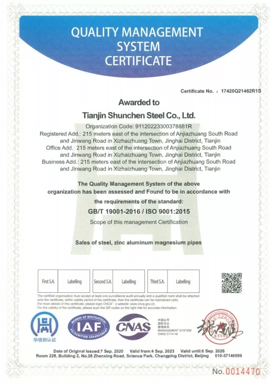 بخش U فولاد Shunchen Industrial دارای گواهینامه کیفیت ISO9001، مطابق با استانداردهای ملی است. ما گزارش های آزمایش مواد شخص ثالث و گواهی ضخامت گالوانیزه را ارائه می دهیم. تولید ما از خطوط تولید پیشرفته استفاده می کند که 12 مرحله فرآیندی دقیق را طی می کند که با بیش از 20 سال تخصص تولید تقویت شده است. ما یک سابقه 12 ساله از صفر نقض قرارداد و صفر حوادث کیفیت سالانه را حفظ کرده ایم. در طول فرآیند تولید، سه عملیات غیرفعال سازی برای افزایش مقاومت ضد قلیایی محصولات گالوانیزه اعمال می شود. هر محصول نهایی قبل از بسته بندی و ارسال تحت خشک شدن، بازرسی و تکمیل قرار می گیرد. این شرکت دارای گواهینامه های ISO 9000، سیستم 3A و گواهینامه EU CE است. با 12 مرحله فرآیند و مکانیزم بازرسی جامع سه سطحی، ما به صفر سالانه کیفیت و حوادث ایمنی دست یافته ایم و رکورد 12 ساله عدم نقض قرارداد را حفظ کرده ایم.